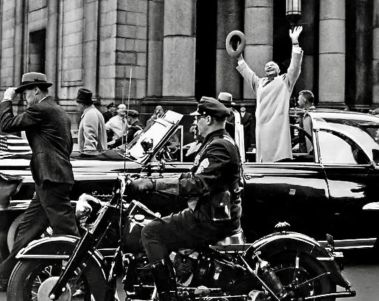 Dwight Eisenhower was giving a speech in the hotel to the faithful, taking a short break, and then giving a speech in front of Higbee’s beside the monument to friends enemies passersby loafers and the lunch crowd. Downtown Cleveland was spic and span. The commander-in-chief liked what he saw. The dummies in the window of a clothes shop on Euclid Ave. came to life and waved when he and Mamie passed by. Ike tipped his hat smiling broadly.
