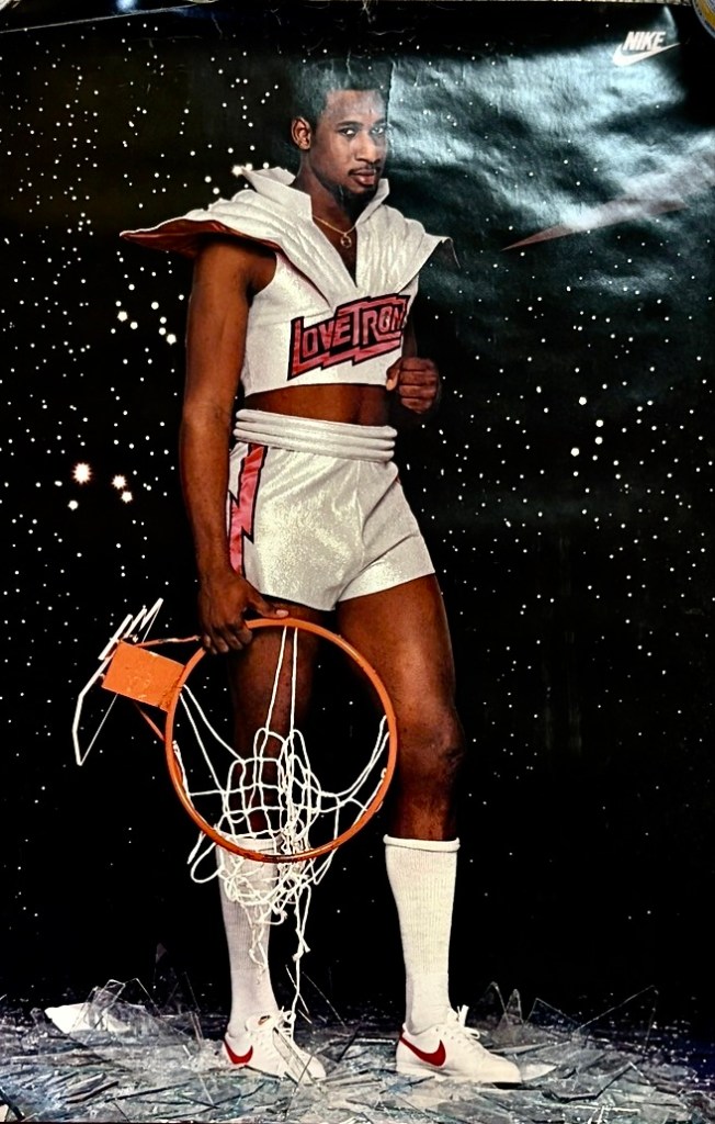 His nicknames were Sir Slam, Chocolate Thunder, and Dr. Dunkenstein. He wore a LoveTron t-shirt while warming up. He told the Cleveland sportswriters he was an alien from the planet LoveTron, where he spent the off-season practicing “interplanetary funkmanship” with his girlfriend Juicy Lucy. The reporters scribbled it down like it was sirloin.