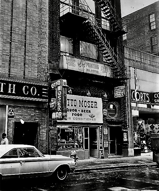 Otto Moser’s was a downtown bar restaurant on East 4th St. in Cleveland, Ohio. When I started cutting classes at Cleveland State University it had been there about eighty years. It toasted the century mark just before its time came due. It was a narrow deep-set place between a shoe store and a Woolworths. A civil defense shelter was between the variety store and Otto Moser’s, in case the Russians went crazy and started dropping atomic bombs. Everybody at Otto Moser’s agreed they would stay right where they were, where there was food and drink.