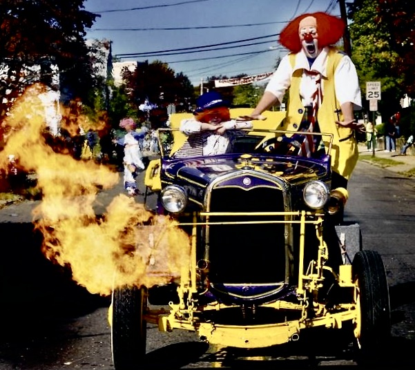 The inferno lasted thirty minutes. Once it was out a policeman waved us forward and we drove away. We drove along the river. As we went the water became orange from the pickling acid used by the steel mills. We got lost again and ended up on the Jennings Rd. Bridge, which connected Abbey Ave. to W. 25th St. Our driving parent knew W. 25th St. well because he shopped for fruits and vegetables at the West Side Market. He knew how to get home from there. Crossing the bridge I looked down. There was a slaughterhouse below us. I could see blood and animal parts streaming out of  outfalls and into the Cuyahoga River.